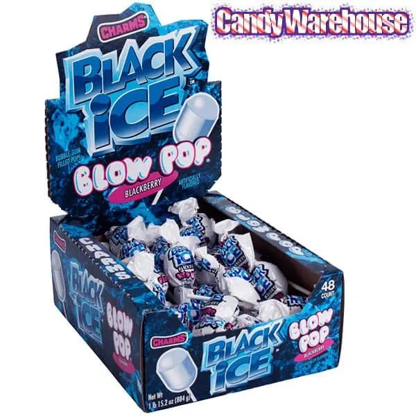 Display box contains 48 Charms Black Ice Blow Pops.