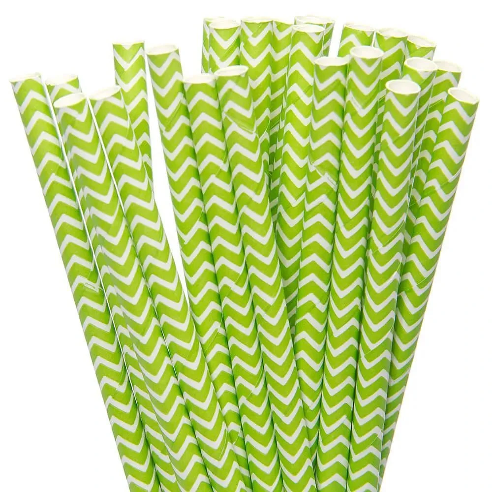 Bag contains 25 Jasmine Green Chevron Striped Paper Drinking Straws.